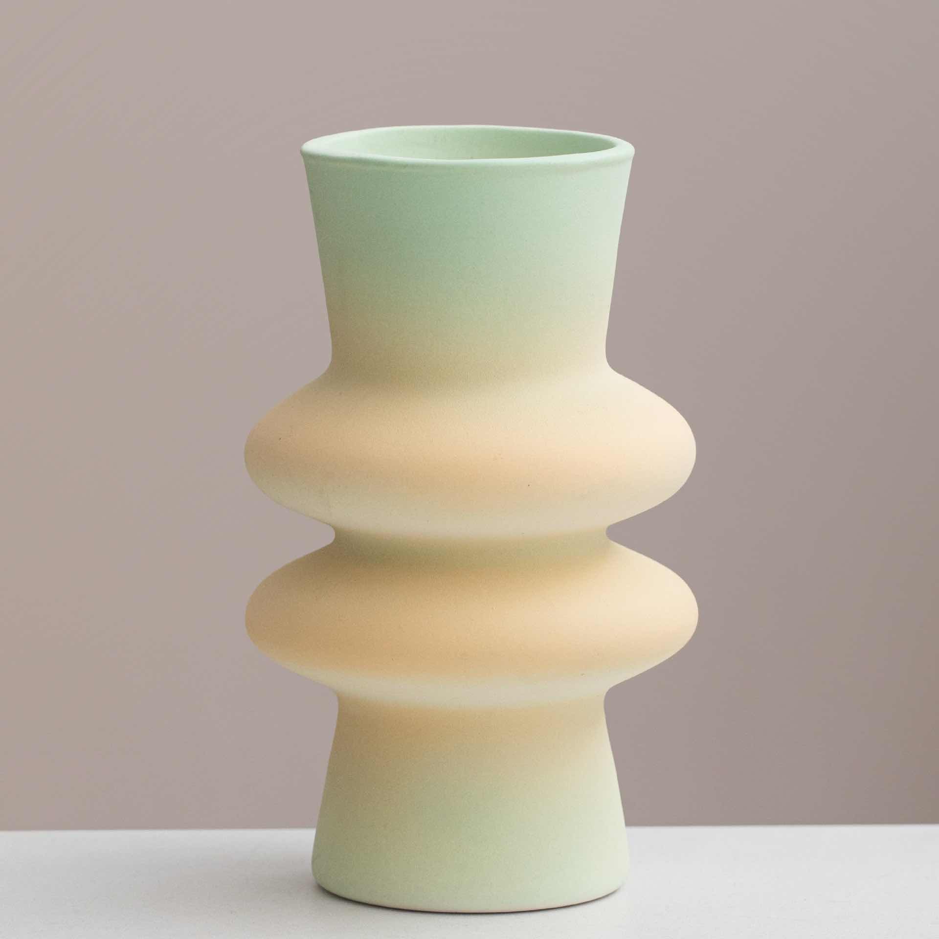 Handmade Ceramic Gradient Vase – Dopamine Geometric Matte Flower Vessel