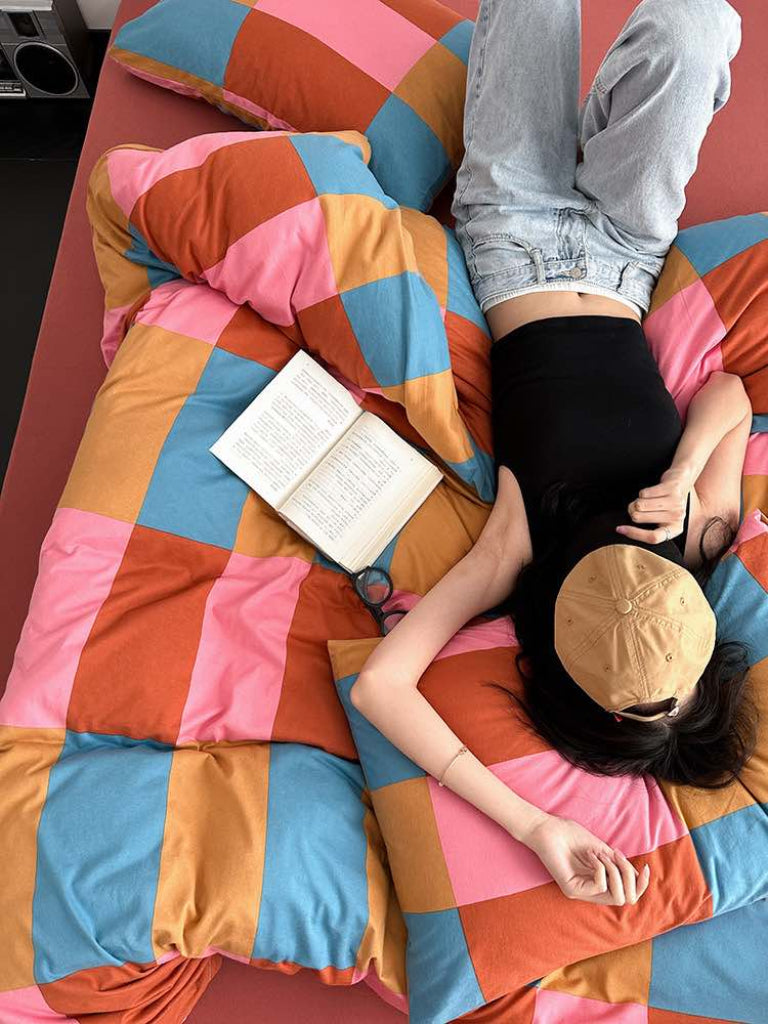 Add joy and color to your bedroom with this dopamine-inspired checker bedding set.